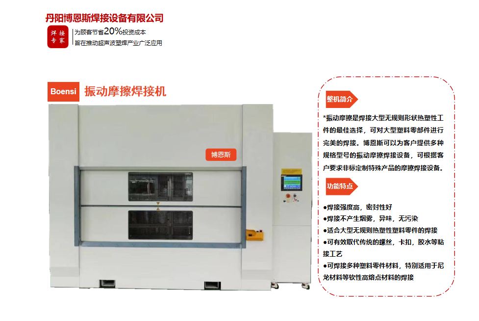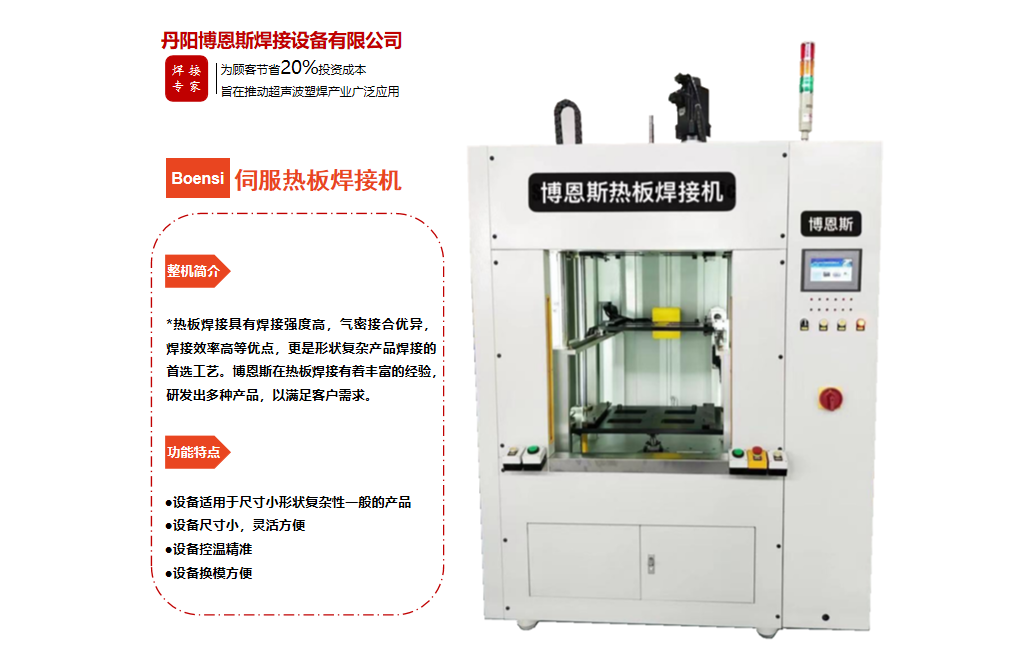丹陽博恩斯焊接設(shè)備有限公司是塑料焊接領(lǐng)域集研發(fā)設(shè)計(jì)、生產(chǎn)制造、銷售服務(wù)為一體的企業(yè)。公司自成立以來堅(jiān)持“以人為本”的理念,組織了一支強(qiáng)大的技術(shù)研發(fā)團(tuán)隊(duì),攜多年來積累的豐富經(jīng)驗(yàn),并結(jié)合國(guó)際先進(jìn)塑料焊接技術(shù),根據(jù)市場(chǎng)需要,不斷開發(fā)具有核心競(jìng)爭(zhēng)力的新產(chǎn)品。公司具有很強(qiáng)的非標(biāo)機(jī)械研發(fā)、設(shè)計(jì)、生產(chǎn)能力,可為廣大客戶定制各類專用機(jī)械設(shè)備。公司設(shè)計(jì)生產(chǎn)的塑料焊接設(shè)備已廣泛應(yīng)用于汽車、電子、家電、醫(yī)療器械、無紡布...